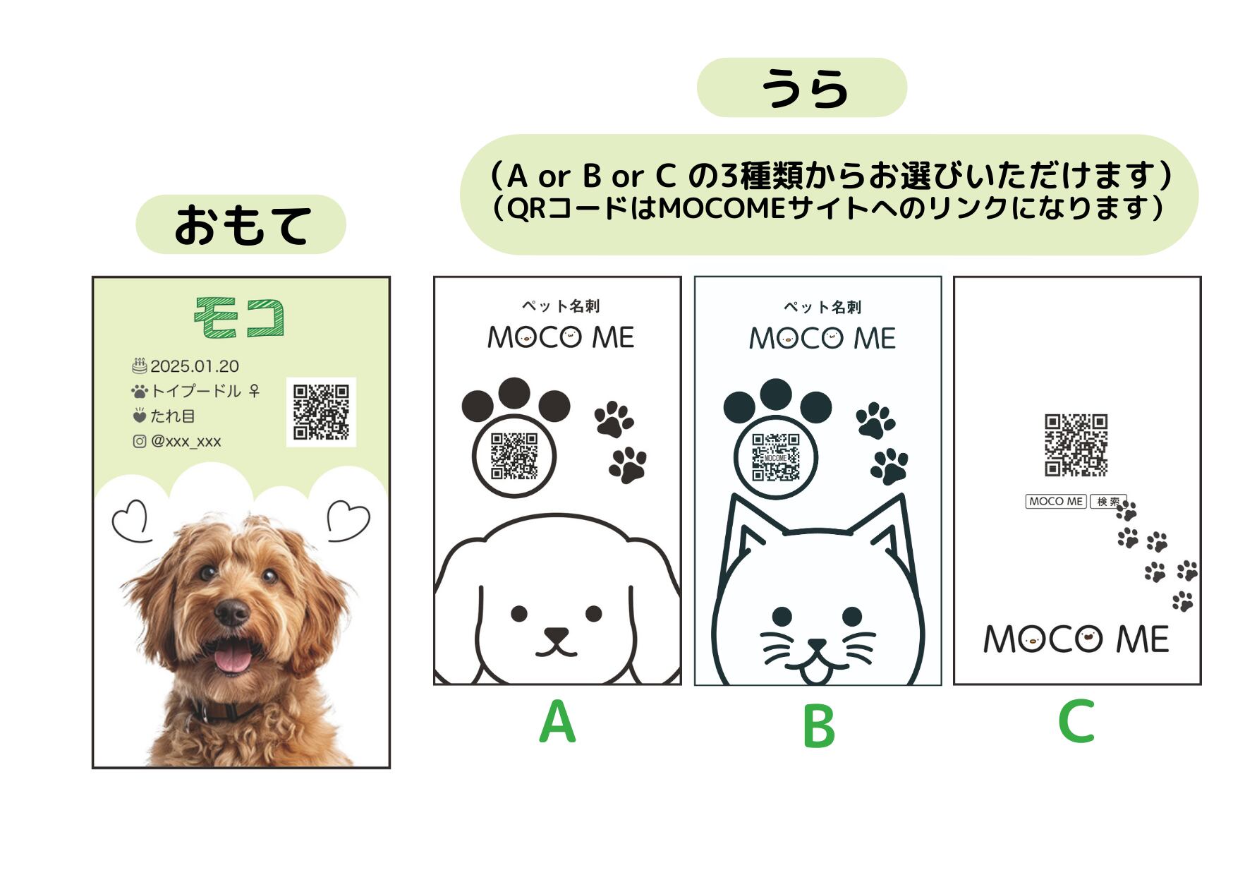 裏面にMOCO ME広告をお入れした両面印刷になります。片面印刷よりも税込550円お安くご購入いただけます。裏面のデザインは、AかBのどちらかをお選びください。