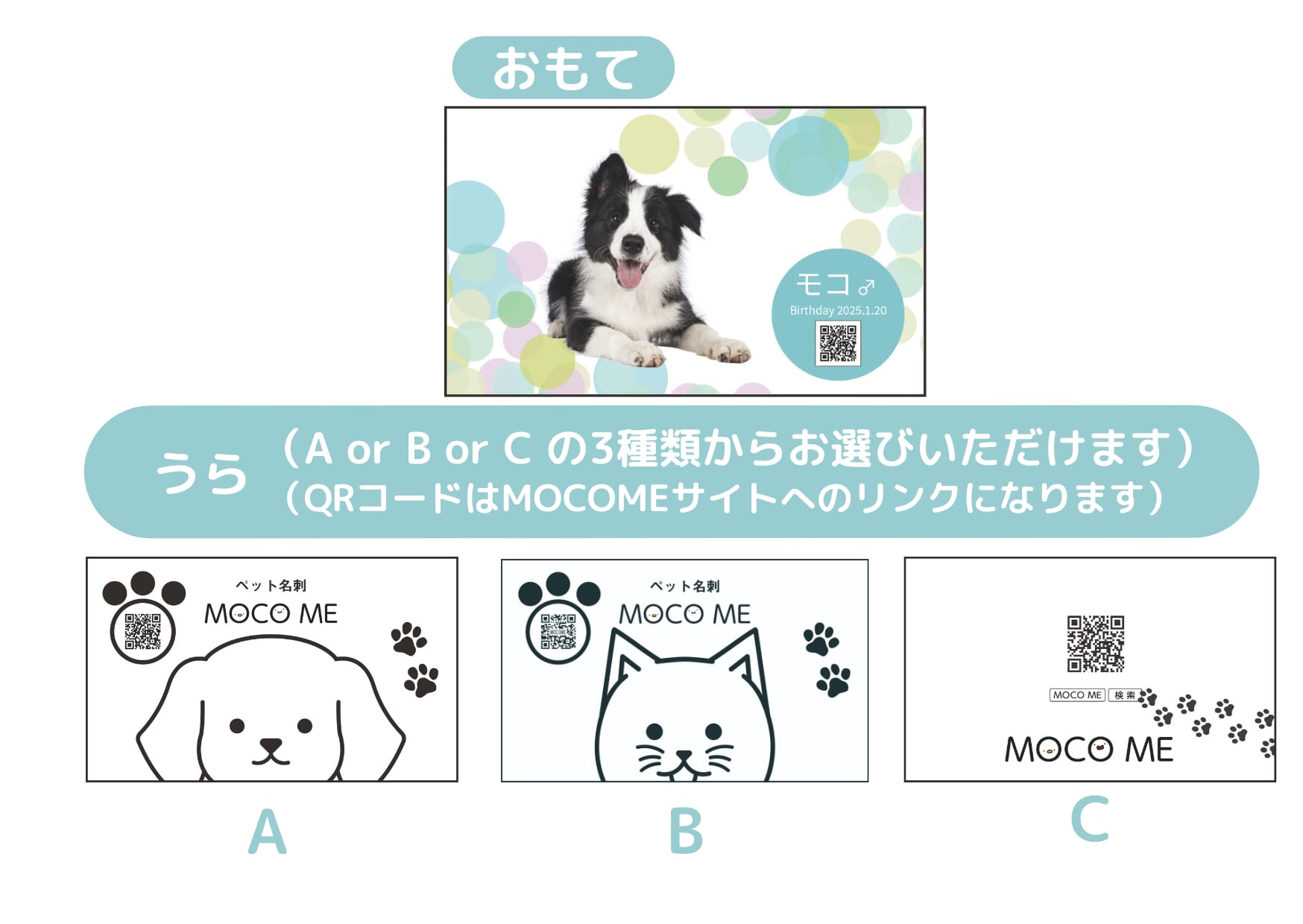 裏面にMOCO ME広告をお入れした両面印刷になります。片面印刷よりも税込550円お安くご購入いただけます。裏面のデザインは、AかBのどちらかをお選びください。