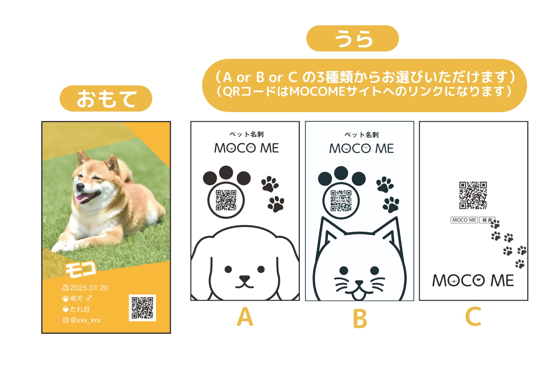 裏面にMOCO ME広告をお入れした両面印刷になります。片面印刷よりも税込550円お安くご購入いただけます。裏面のデザインは、AかBのどちらかをお選びください。