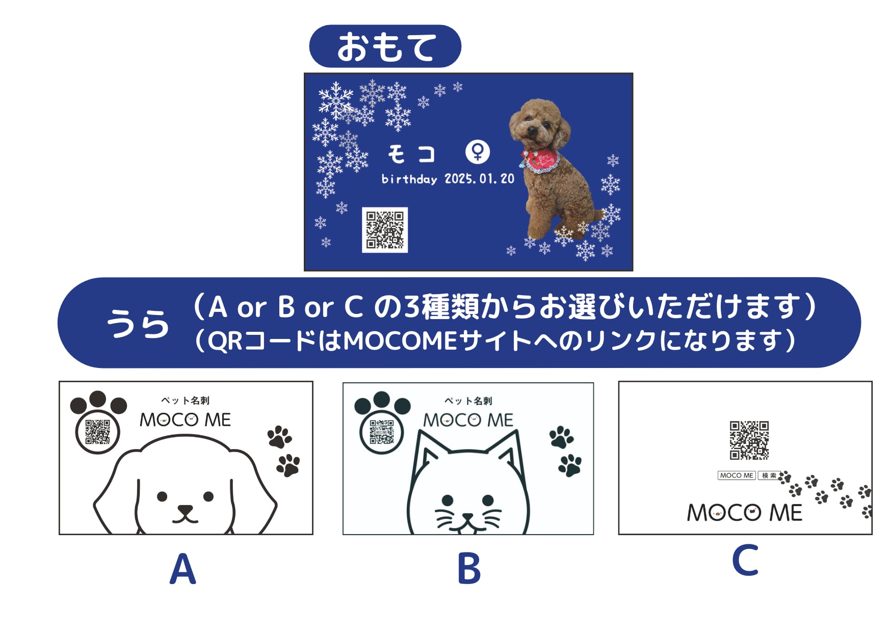 裏面にMOCO ME広告をお入れした両面印刷になります。片面印刷よりも税込550円お安くご購入いただけます。裏面のデザインは、AかBのどちらかをお選びください。