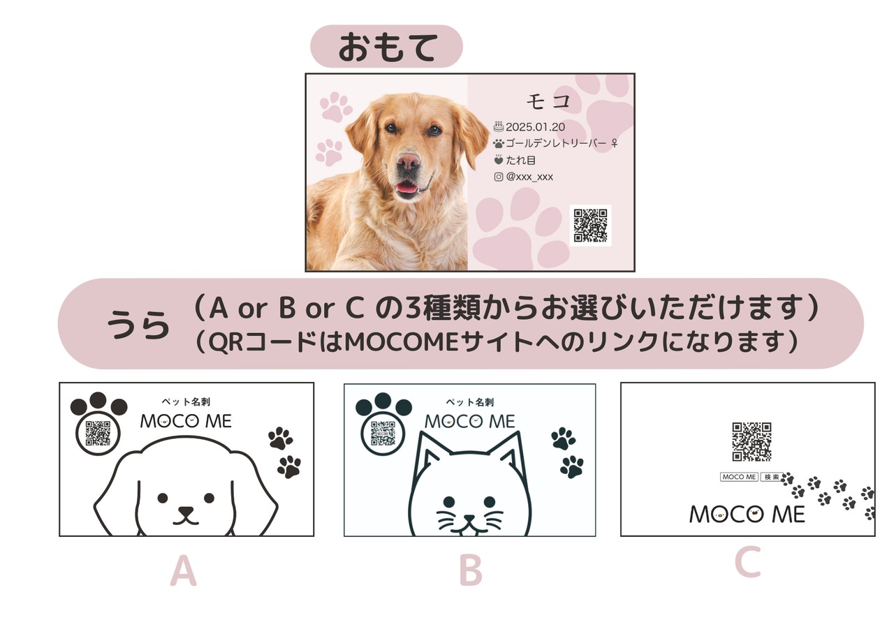 裏面にMOCO ME広告をお入れした両面印刷になります。片面印刷よりも税込550円お安くご購入いただけます。裏面のデザインは、AかBのどちらかをお選びください。
