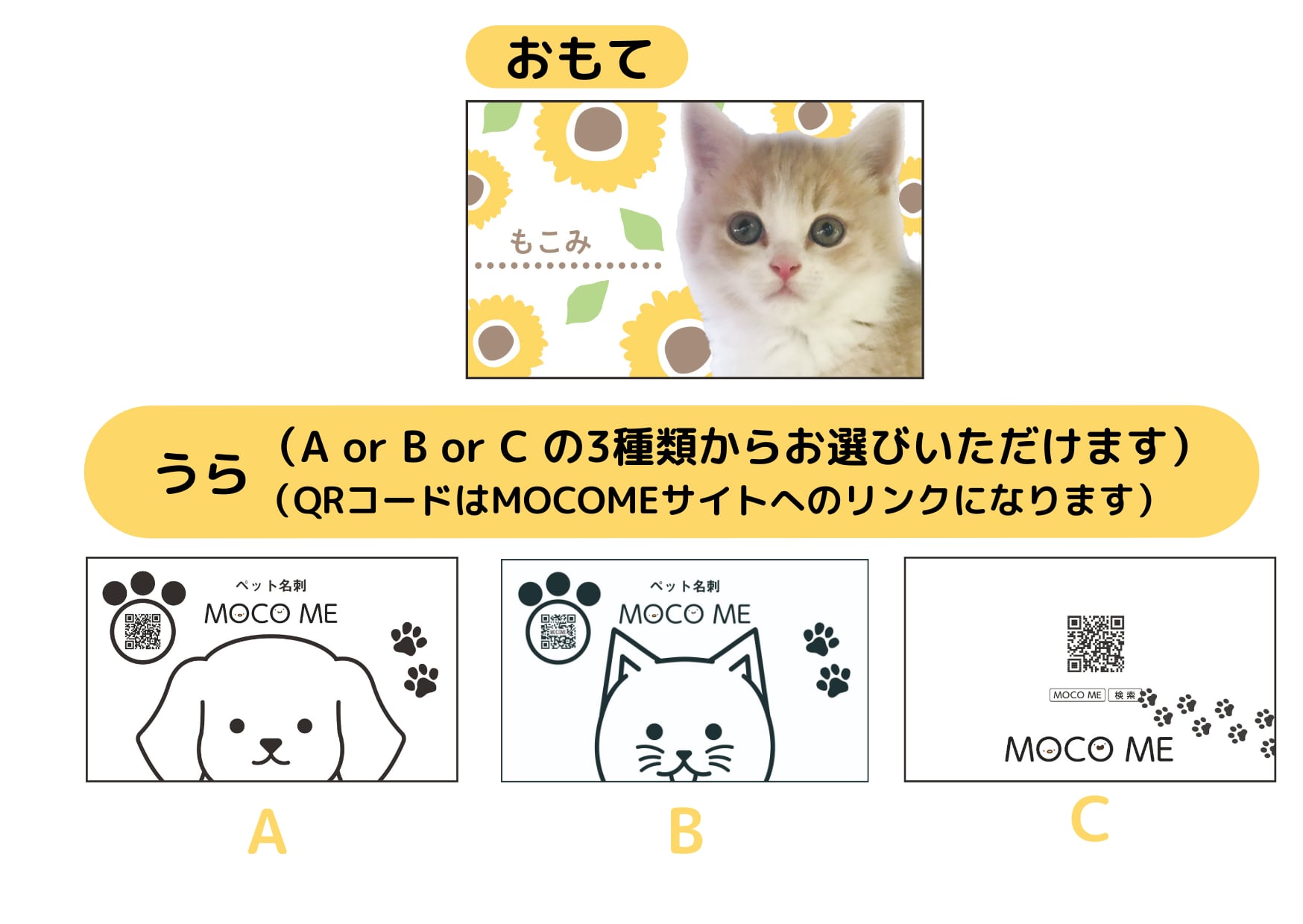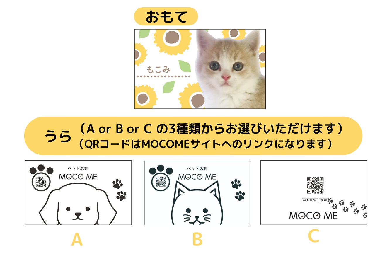 裏面にMOCO ME広告をお入れした両面印刷になります。片面印刷よりも税込550円お安くご購入いただけます。裏面のデザインは、AかBのどちらかをお選びください。