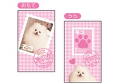 「切手_PS001」は、切手をイメージしたデザインです。ピンク色のギンガムチェックも名刺の可愛さをより引き立てます。