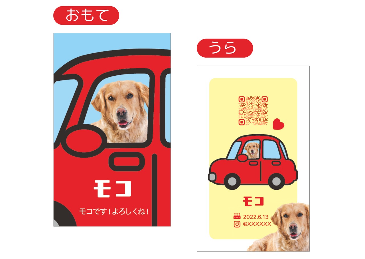 「車_CR001」は、車の乗って旅をするイメージのデザインです。赤い車は、颯爽としたイメージがあり可愛らしい名刺に仕上がります。