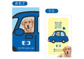 「車_CB002」は、車の乗って旅をするイメージのデザインです。青い車は、落ち着いたイメージがあり可愛らしい名刺に仕上がります。