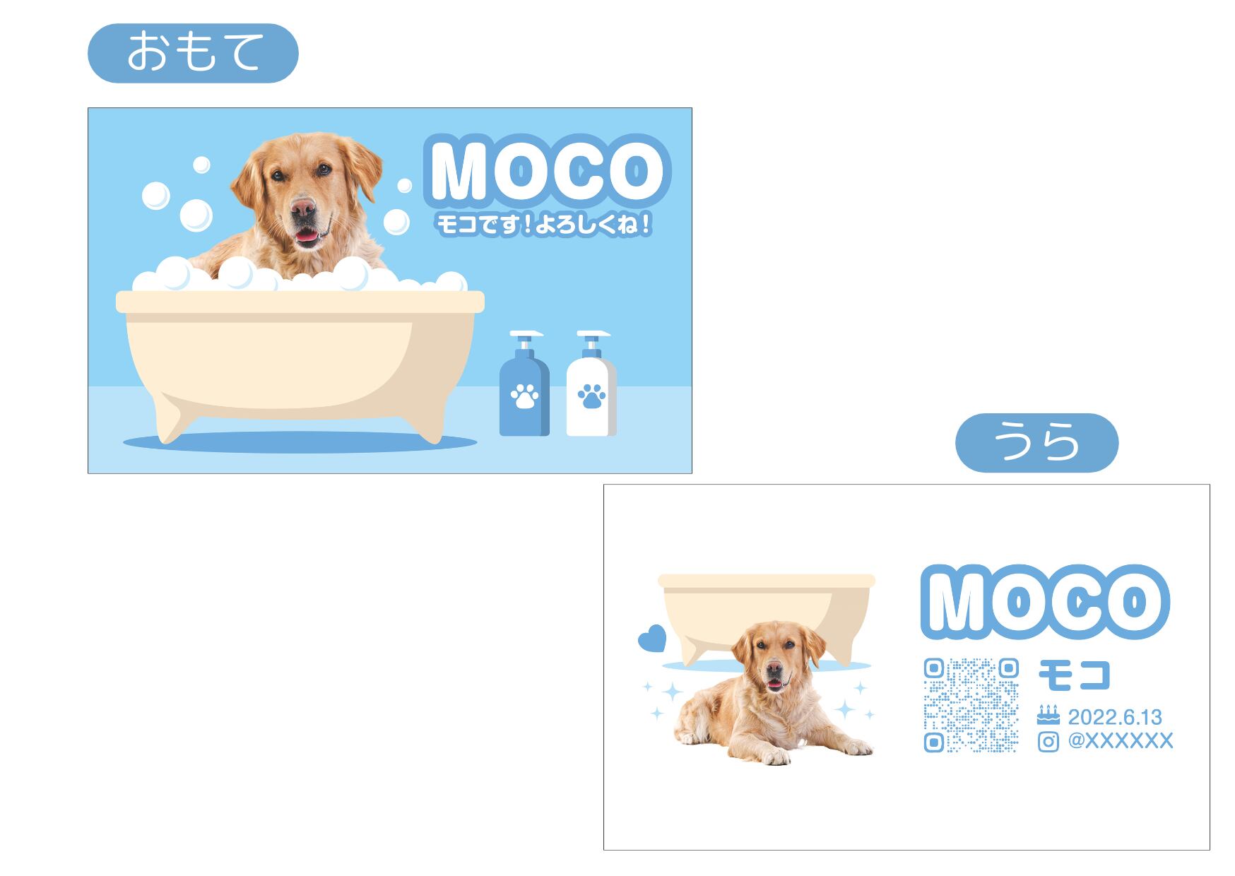 「バスルーム_BLP001」は、バスルームで泡ぶろに入浴しながらくつろいでいるイメージのデザインです。きれい好きな子をイメージした名刺です。